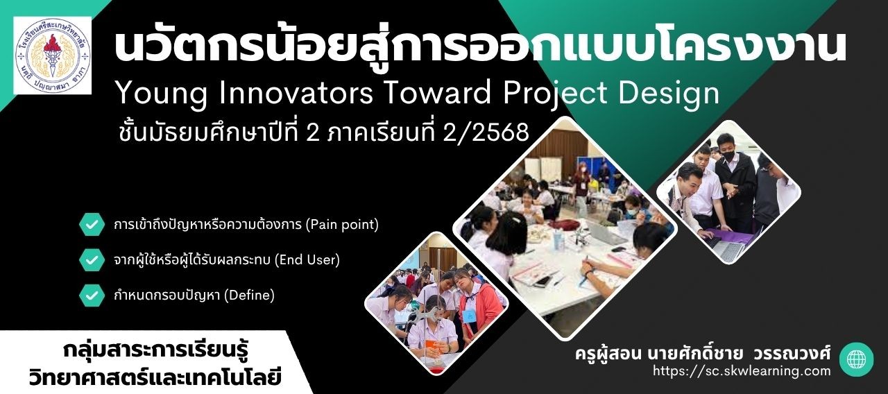นวัตกรน้อยสู่การออกแบบโครงงาน รหัสวิชา ว23333 ชั้นมัธยมศึกษาปีที่ 2 ภาคเรียนที่2/2568